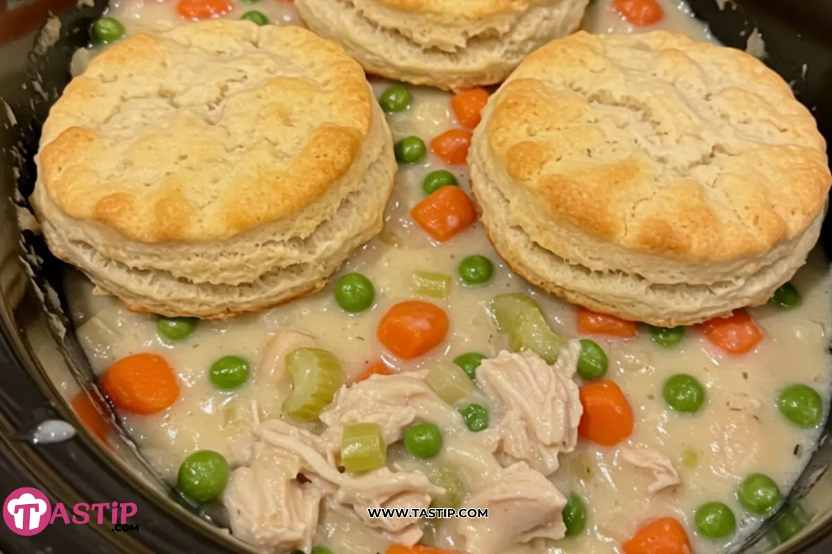 Crock Pot Chicken Pot Pie is a set-it-and-forget-it comfort meal. Tender chicken, vegetables, and a creamy sauce cook low and slow in your slow cooker, topped with golden biscuits for a cozy, effortless dinner.