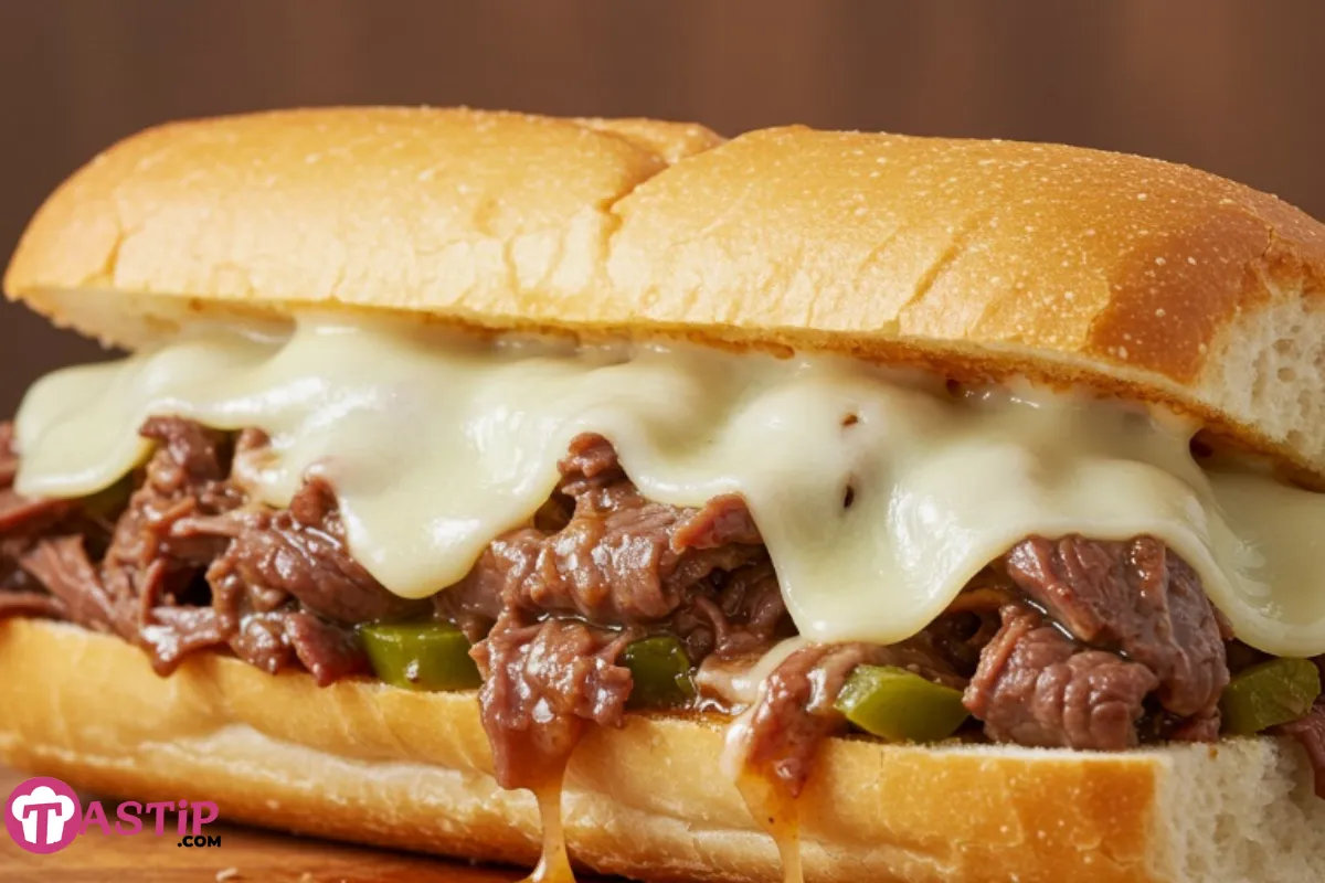 - Build your masterpiece. Pile the juicy beef onto your rolls, top with a slice of cheese, and optionally pop it under the broiler to melt. Spoon a little extra juice on top for the true “au jus” experience.