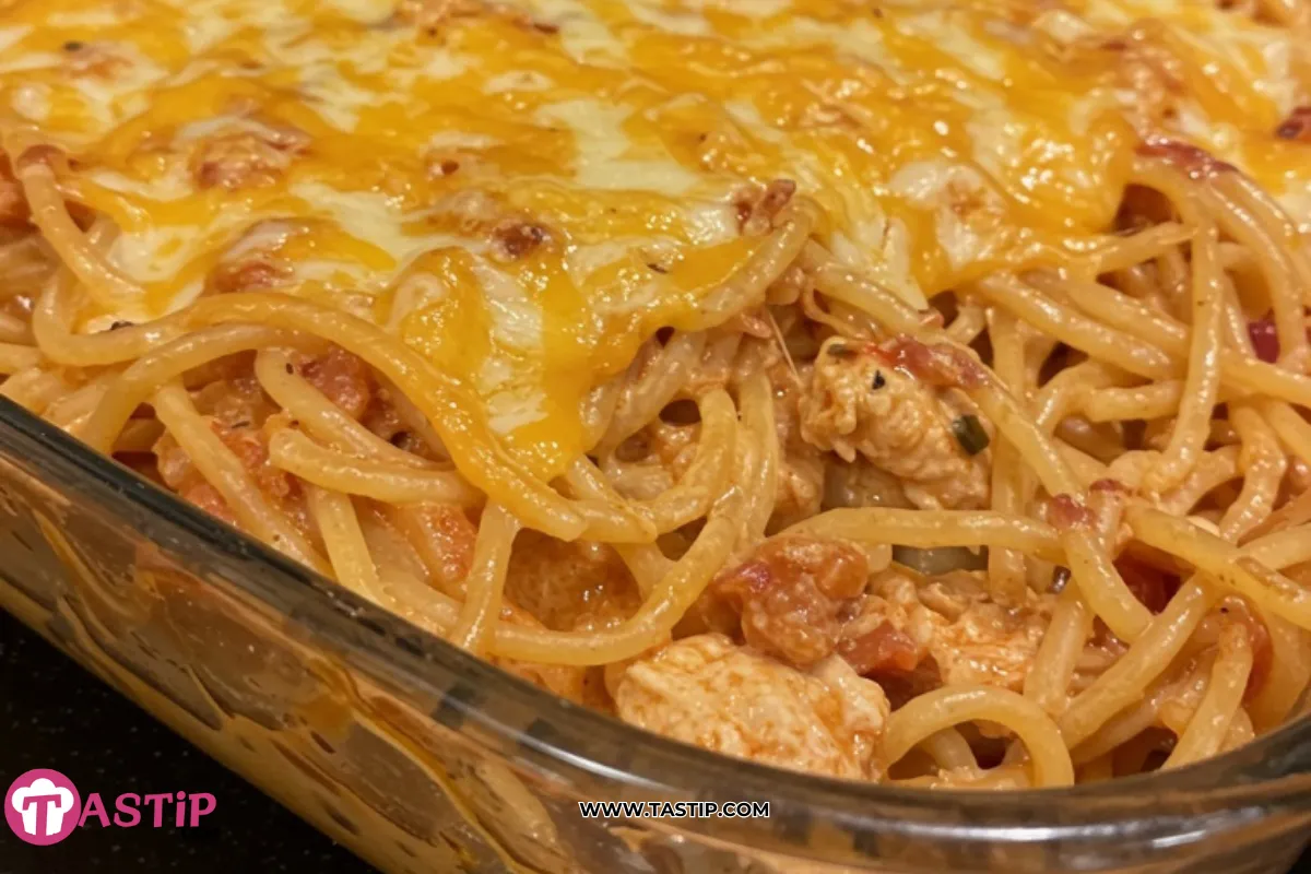 A creamy, cheesy, and spicy Southern casserole made with tender chicken, spaghetti, Rotel tomatoes, and plenty of melted cheese. Perfect comfort food with a kick that feeds the whole family.